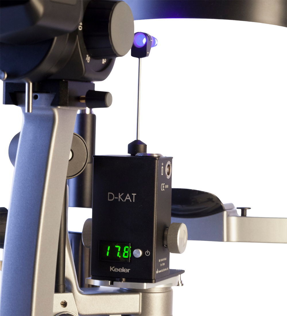 Descubra la fiabilidad de un tonómetro de aplanación Keeler (KAT) que utiliza el método de Goldmann para medir la presión intraocular (PIO), como ayuda en la detección y el diagnóstico del glaucoma. Como dispositivo de medición tipo T para lámparas de hendidura estilo H con iluminación de torre, esta unidad se puede montar con una placa guía, lo que la hace totalmente extraíble para un uso más amplio en una consulta con múltiples lámparas de hendidura. Cuenta con una pantalla LED y electrónica interna para proporcionar mediciones rápidas y precisas con un potencial reducido de error humano. Para uso exclusivo de profesionales sanitarios debidamente formados y autorizados.