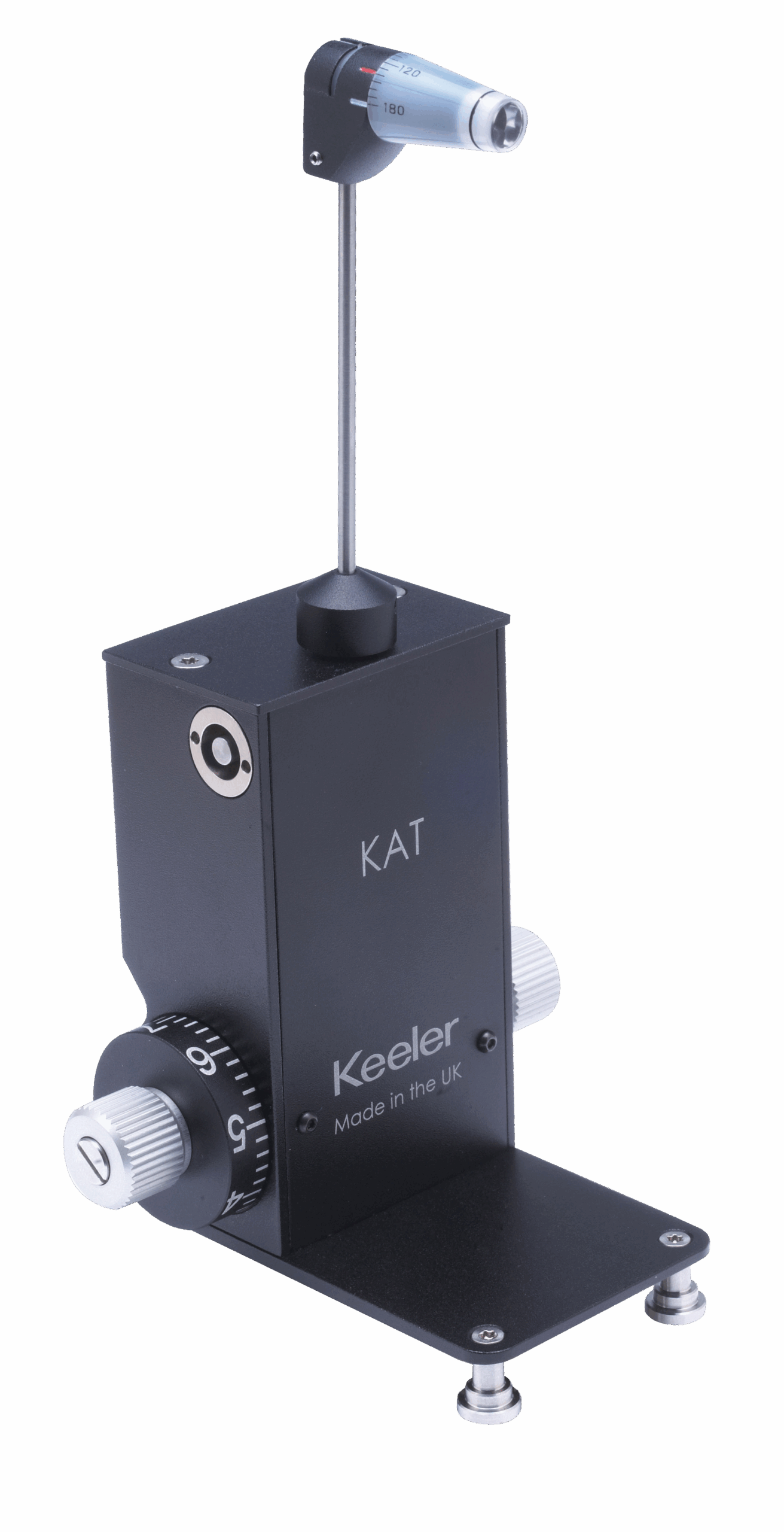 Descubra la fiabilidad de un tonómetro de aplanación Keeler (KAT), que utiliza el método de Goldmann para medir la presión intraocular (PIO), como ayuda en el cribado y el diagnóstico del glaucoma. Como dispositivo de medición tipo T para lámparas de hendidura estilo H con iluminación de torre, esta unidad se puede montar con una placa guía, lo que la hace totalmente extraíble para un uso más amplio en una consulta con múltiples lámparas de hendidura.